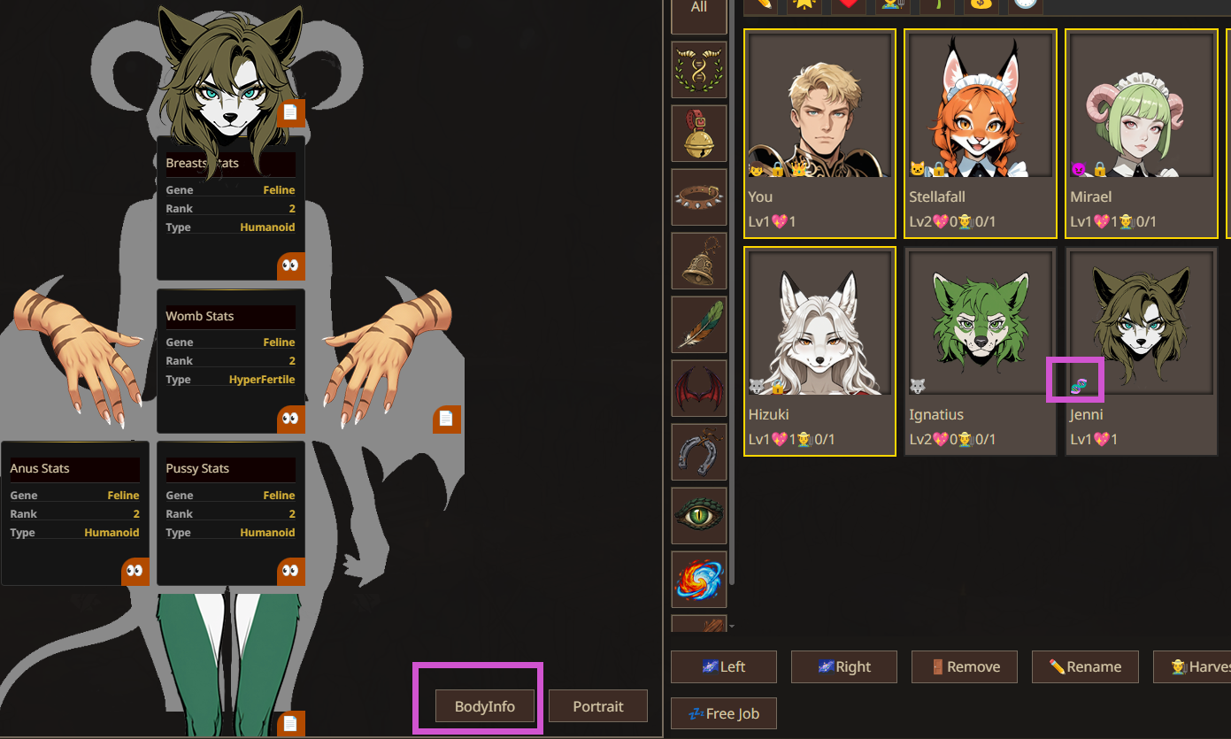 - Added status display for each body part. Currently, the display is quite simplistic and rudimentary.